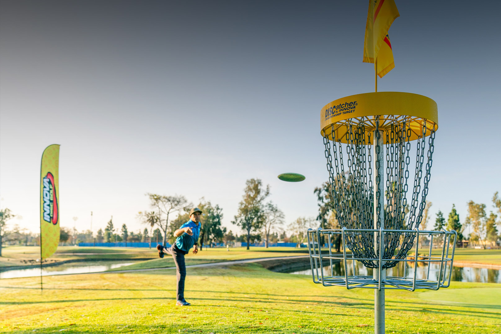 The world’s most widely used and preferred disc golf target is Innova’s DISCatcher Pro28. You can get (9) of our state-of-the-art DISCatcher Pro28s for $3375 (plus applicable tax and shipping). The least expensive design would incorporate existing grass tees or utilize a cart path to eliminate the need for brand-new tee pads or extra signage, but those are features that some courses do add later.