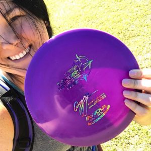 “I started playing roughly 2 years ago and my boyfriend introduced me to the sport. My first sanctioned event was in August of 2016. So I have competitively been playing for just over one year. Fortunately I have picked up fairly quickly and have had significant results in my first year. I am active in my community especially for helping women grow and plan to continue those efforts! I also love my Innova Discs